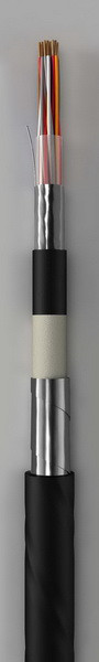 Застосування Кабель призначений для експлуатації в місцевих первинних мережах зв'язку і комунікаційних лініях з номінальною напругою дистанційного живлення до 145 В змінного струму частотою 50 Гц або напругою до 200 В постійного струму. Прокладка в грунтах всіх категорій (крім механізованої - в скельних грунтах) не схильних до мерзлотних деформацій. Технічні характеристики Температурний діапазон: - експлуатації від -50°С до +60°С - прокладки та монтажу від -15°С до +60°С Радіус вигину не менше 12 діаметрів кабелю. Мінімальний термін служби - 20 років. Кабель відповідає НД України ТУ У 05758730.014, розроблених з урахуванням вимог: МЕК 60708-1, МЕК 60189-1, ГОСТ Р 51311-99, BS 3573 Структура кабелю - струмопровідна жила - мідна м'яка дріт Ø 0,32; 0,40; 0,50 або 0,64 мм - ізоляція жив - поліетилен (ПЕ), суцільна - ізольовані жили, різко відрізняються за кольором, скручені в пару. Всі пари в елементарному пучку мають індивідуальну забарвлення. - сердечник кабелю складається з елементарних 5 або 10-ти парних пучків (в кабелі з числом пар до 100 включно) або з глав вих пучків (в кабелі з числом пар більше 100). Скріпляюча обмотка пучків і сердечника - синтетична нитка або стрічка індивідуального кольору для кожного пучка - поясна ізоляція - синтетична стрічка (ПВХ, ПЕТ-Е або ПЕ), накладена подовжньо або спірально - екран - алюмополиэтиленовая стрічка, накладена подовжньо або спірально. Під екраном поздовжньо прокладена мідна луджена дріт Ø 0,4 або 0,5 мм - оболонка - ПЕ світлостабілізована - броня - плоскі сталеві стрічки, накладені спірально з перекриттям. Подушка під броню - ПВХ стрічки. Поливання по броні - бітум нафтовий або гідрофобний заповнювач - захисний шланг - ПЕ світлостабілізована Можливі варіанти виконання. Можливе виготовлення кабелю з поздовжнім накладенням гофрованої сталевої ламінованої броні без ПВХ стрічок під бронею.